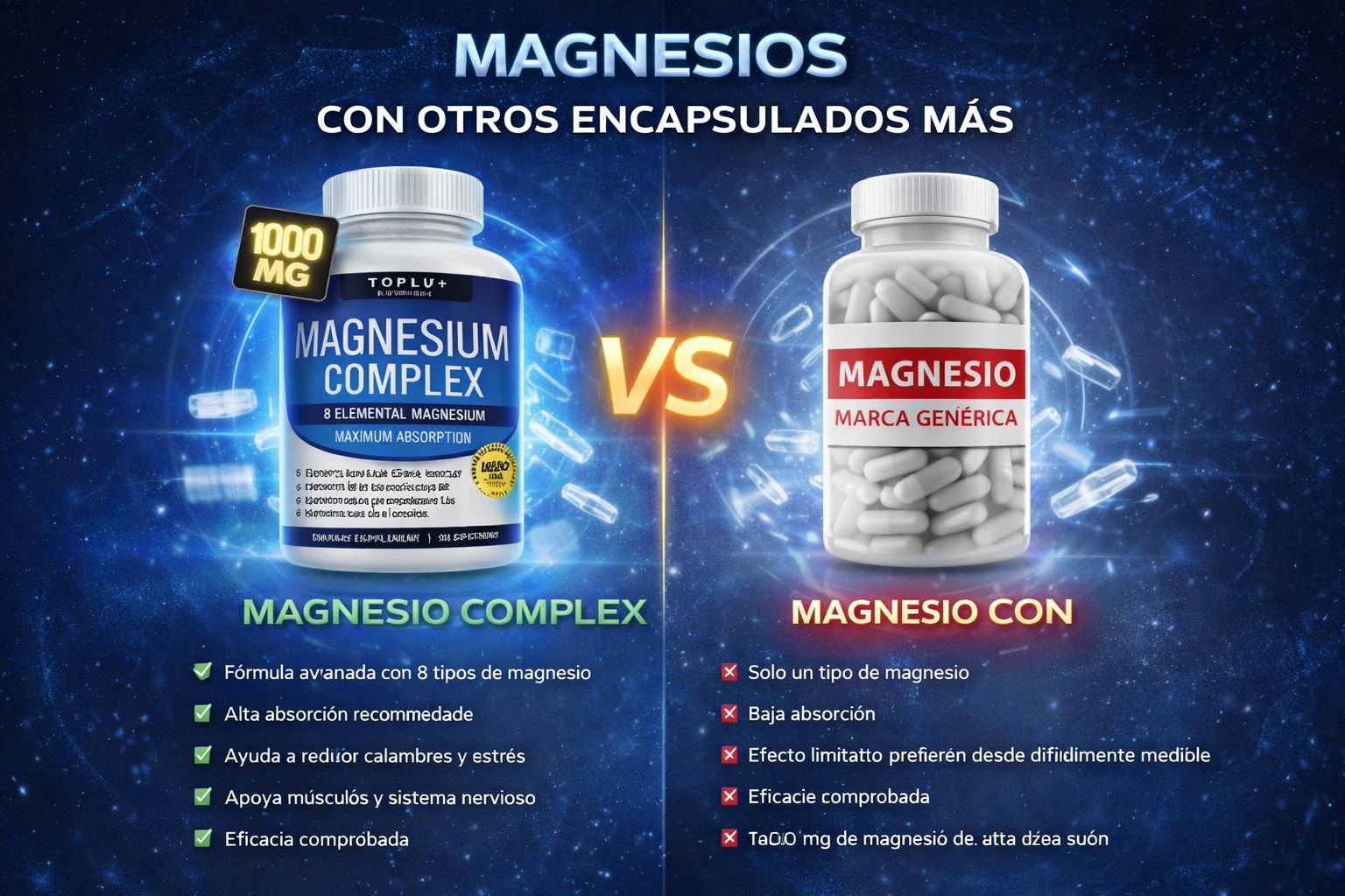✔ 1000 mg de magnesio de alta absorción