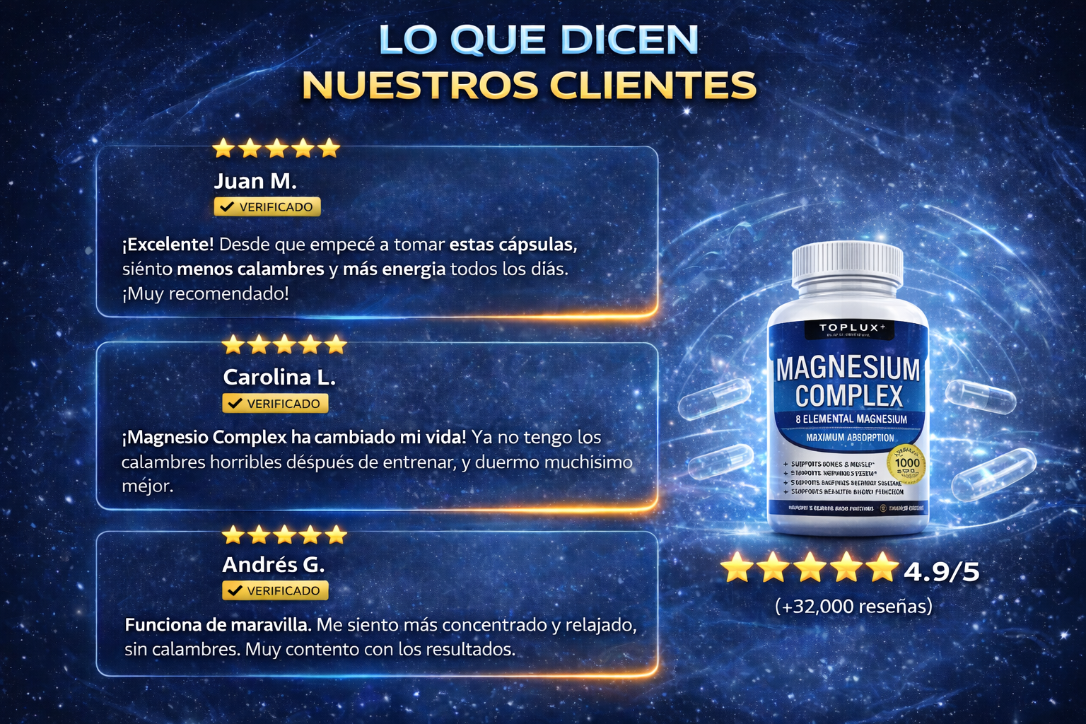 Descubre el poder de Magnesio Complex y siente la diferencia desde las primeras tomas. Su fórmula avanzada ayuda a fortalecer tus músculos, mejorar tu concentración y reducir el estrés, para que tengas un día más productivo y equilibrado.